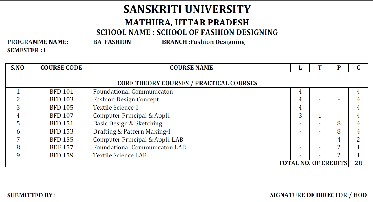 | BACHELOR OF ARTS (FASHION DESIGNING) | B.A FD | 3 | Semester | School of Fashion Designing | BAFD |